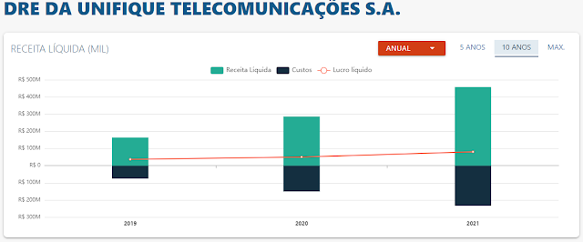 A rentabilidade das ações da Unifique nós já vimos que está bem ruim, mas ainda podemos comparar com a rentabilidade das concorrentes, gráfico abaixo do site Status Invest é bem interessante.